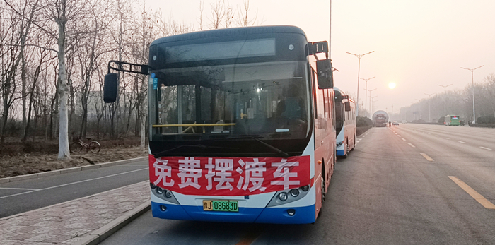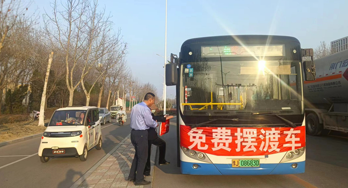 3月13日,市公交公司制定相應(yīng)的擺渡車運(yùn)營保障方案,并連夜制作了帶有“免費(fèi)擺渡車”字樣的條幅。3月14日早晨,天剛拂曉,公司便組織工組人員將條幅貼心地掛在了擺渡車上,同時(shí)在站臺(tái)乘車處有工作人員現(xiàn)場(chǎng)維持秩序,為乘客提供咨詢、幫扶等服務(wù),疏導(dǎo)乘客文明、有序乘車,為群眾的出行增添了一份溫暖與便利。
